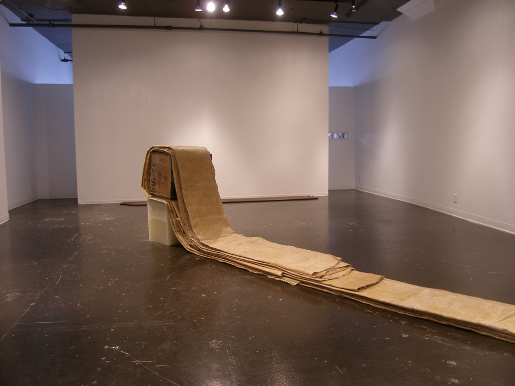Detailed Description : “557” includes seven copper rods, seven steel rods, wax block, seven units of canvas and a crate of dulse. These items will be delivered to the gallery at which time I will proceed to respond to the architectural and environmental aspects of the gallery space. My intent is to explore the phenomenological relationship of the presented material in respect to the gallery and it’s constitutes. Additional material maybe added to the list mentioned above. The addition of material allows me to transfer the work from space to space while responding to specific concerns that arise from the work as it unfolds.