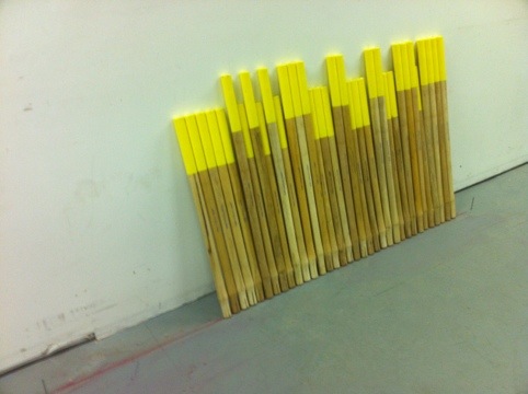 sledge cut. transformations Material : hickory, wood, bronze, paint Location : studio, year unknown studio, hickory Image 4 of 6 Description : hickory handle removed from bronze sledge hammer
