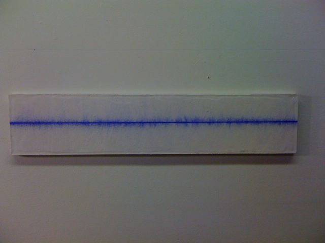 line. post 2006 Material : pigment, plaster, aluminum base Location : studio, year unknown blue Image 2 of 2 Description : Using a string-line saturated in powdered pigment, a line was ‘snapped’ into wet plaster.