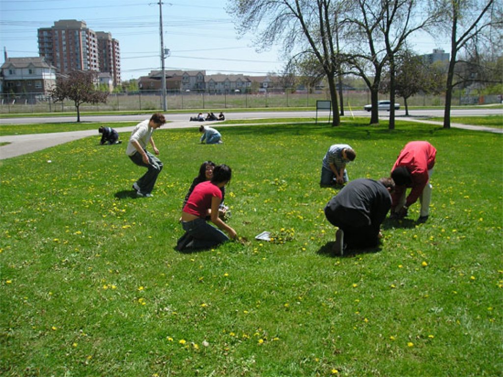 cawthra park. ACTIONS Material : flowers, students Location : Cawthra Park Secondary School , Mississauga ON, 2005 planting Image 2 of 5 Description : One week visiting artist at Cawthra Park Secondary School. Site responsive project. Students created work, myrtle was facilitator.