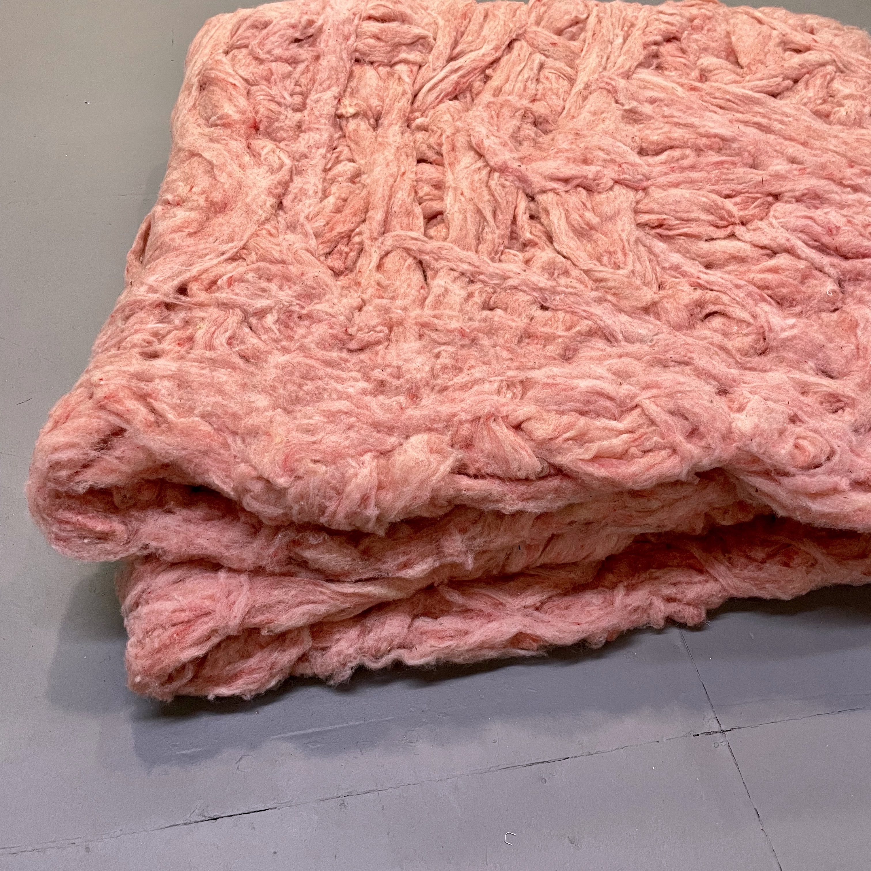 in·su·late. dark harbor Material: wool Location: studio, 2023 folded detail Image 2 of 7 Description: dry felted wool (dimensions 96″x 98″x 5″). Wool harvested and processed Prince Edward Island.