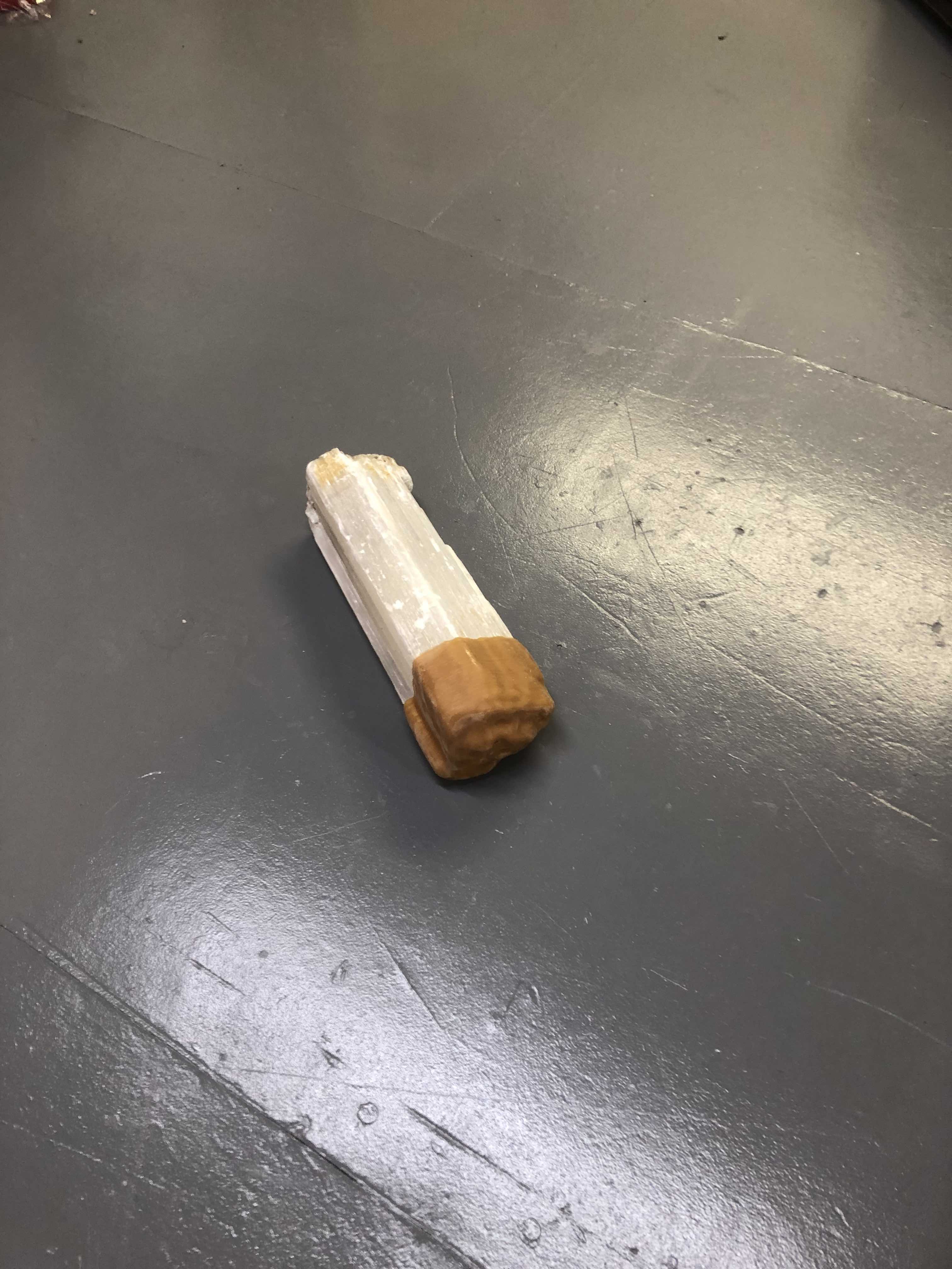torch. dark harbor Material : selenite, beeswax Location : studio, 2022 studio view Image 2 of 4 Description : component of dark harbor (in progress). selenite crystal dipped repeatedly in beeswax. One foot and half in length.