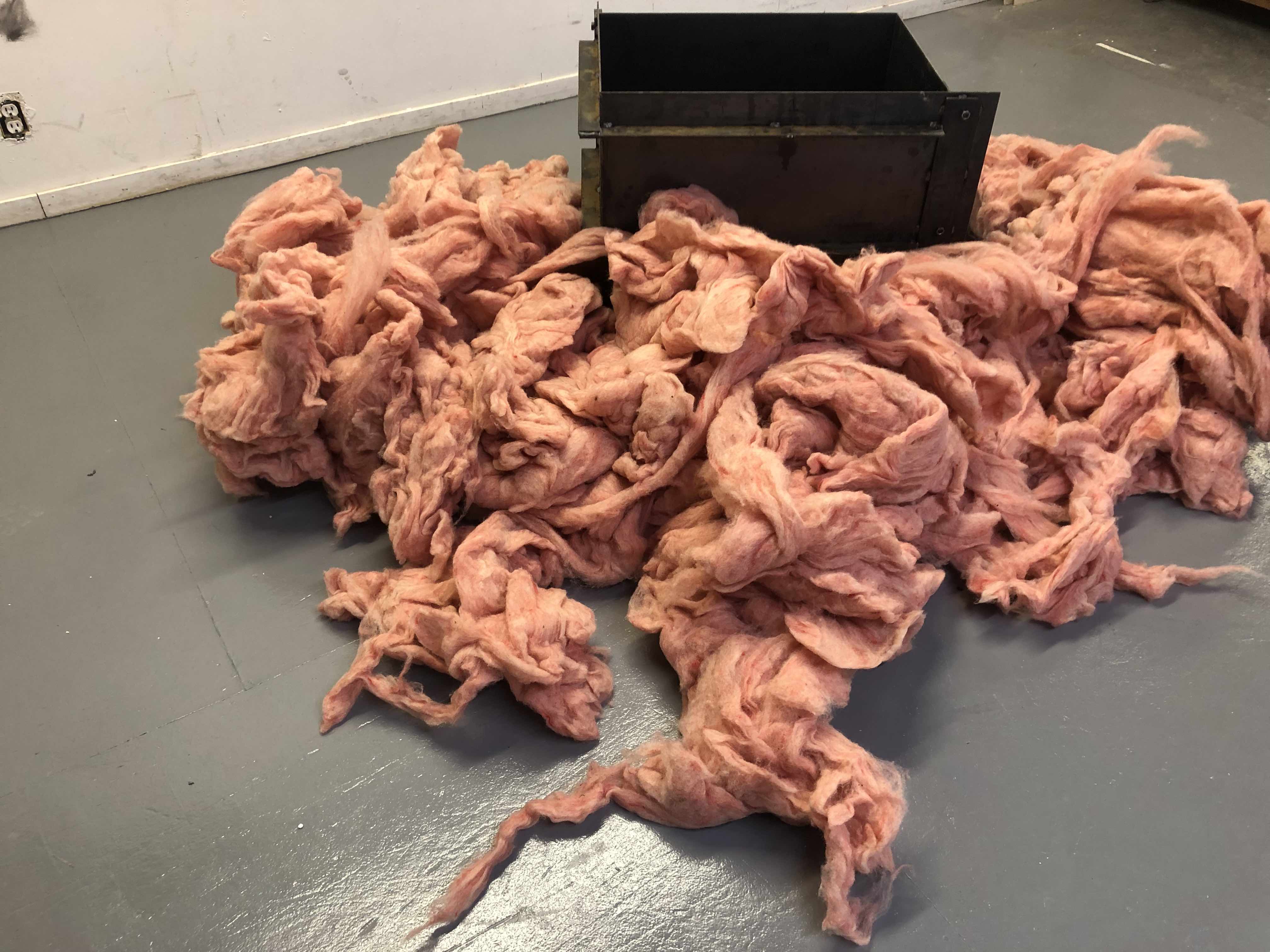 Description : component of dark harbor (in progress). selenite crystal dipped repeatedly in beeswax (One foot and half in length.) Steel mold (dimensions). Wool harvested and processed Prince Edward Island.