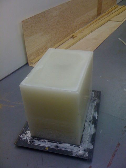 sartre to 557. transformations Material : steel mold, paraffin wax Location : studio, year unknown removing from mold Image 4 of 4 Description : Breakdown of hollow wax ‘bricks’ created by project sartre, 2001-2006. Melted down and poured into steel mold to create sold wax block. Used in project 557.