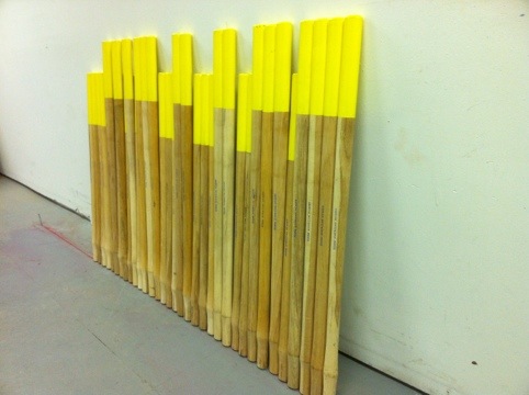 sledge cut. transformations Material : hickory, wood, bronze, paint Location : studio, year unknown studio, hickory Image 2 of 6 Description : hickory handle removed from bronze sledge hammer